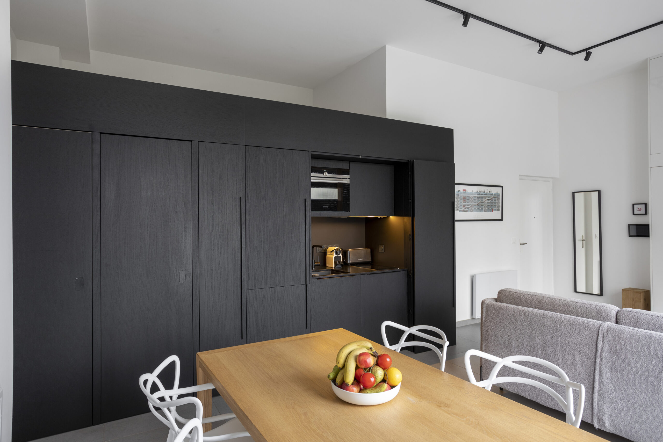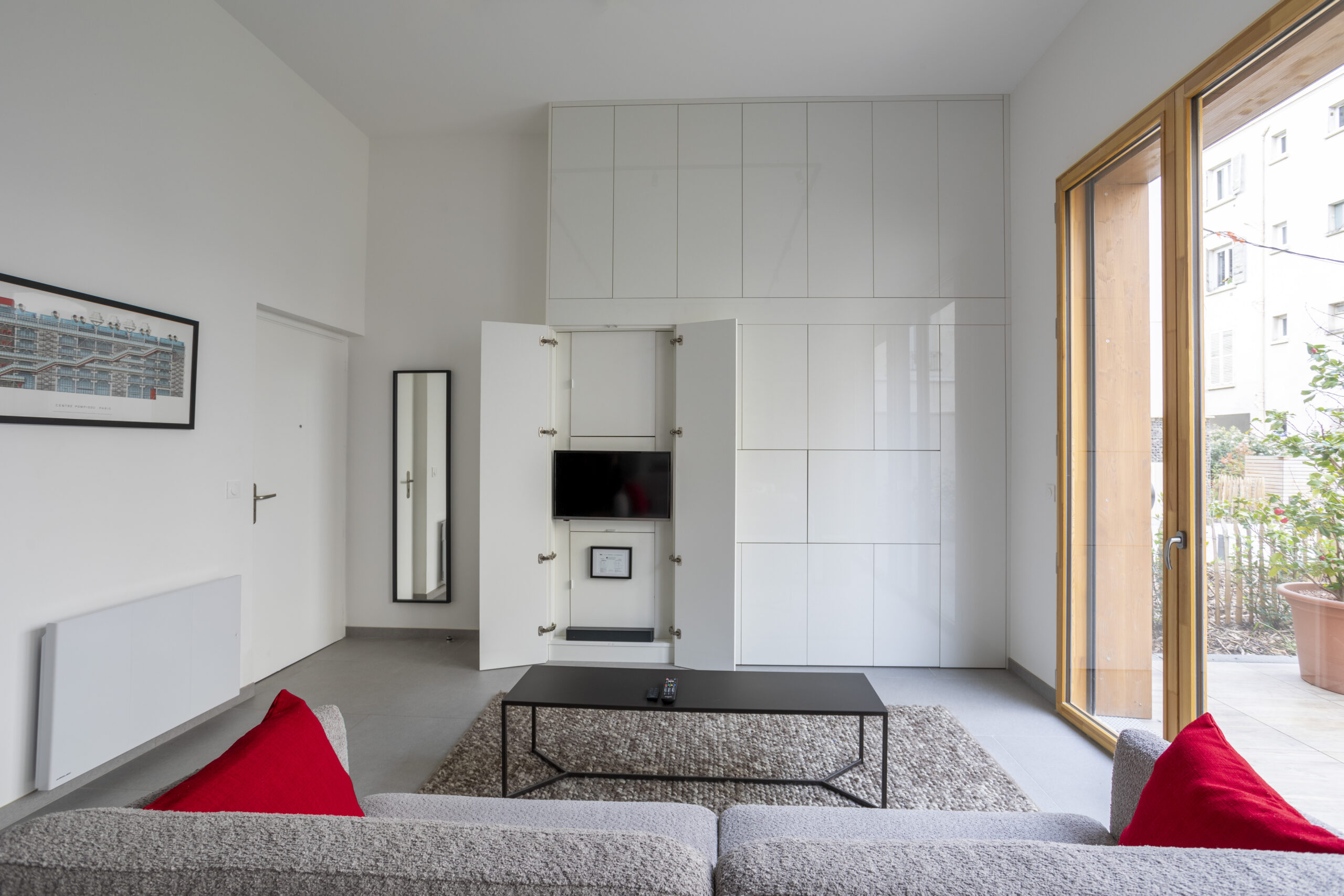 Classé 4 étoiles, vous apprécierez cette location saisonnière à Paris, calme et spacieuse entourée d’un îlot de verdure. Ce loft spacieux et lumineux fait parti d’une petite copropriété neuve de 16 logements et 4 ateliers construits en bois et certifié HQE aux labels Energie positive bas carbone et biodivercity.